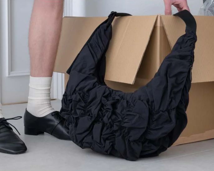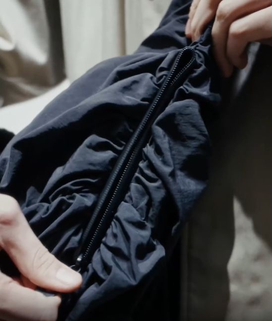 素材には、滑らかなナイロンにギャザーを施した「Gathered Black」を採用。