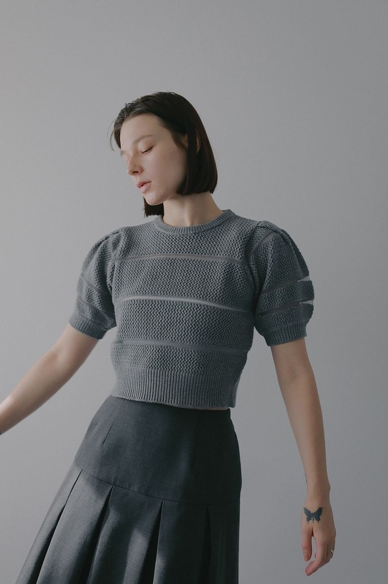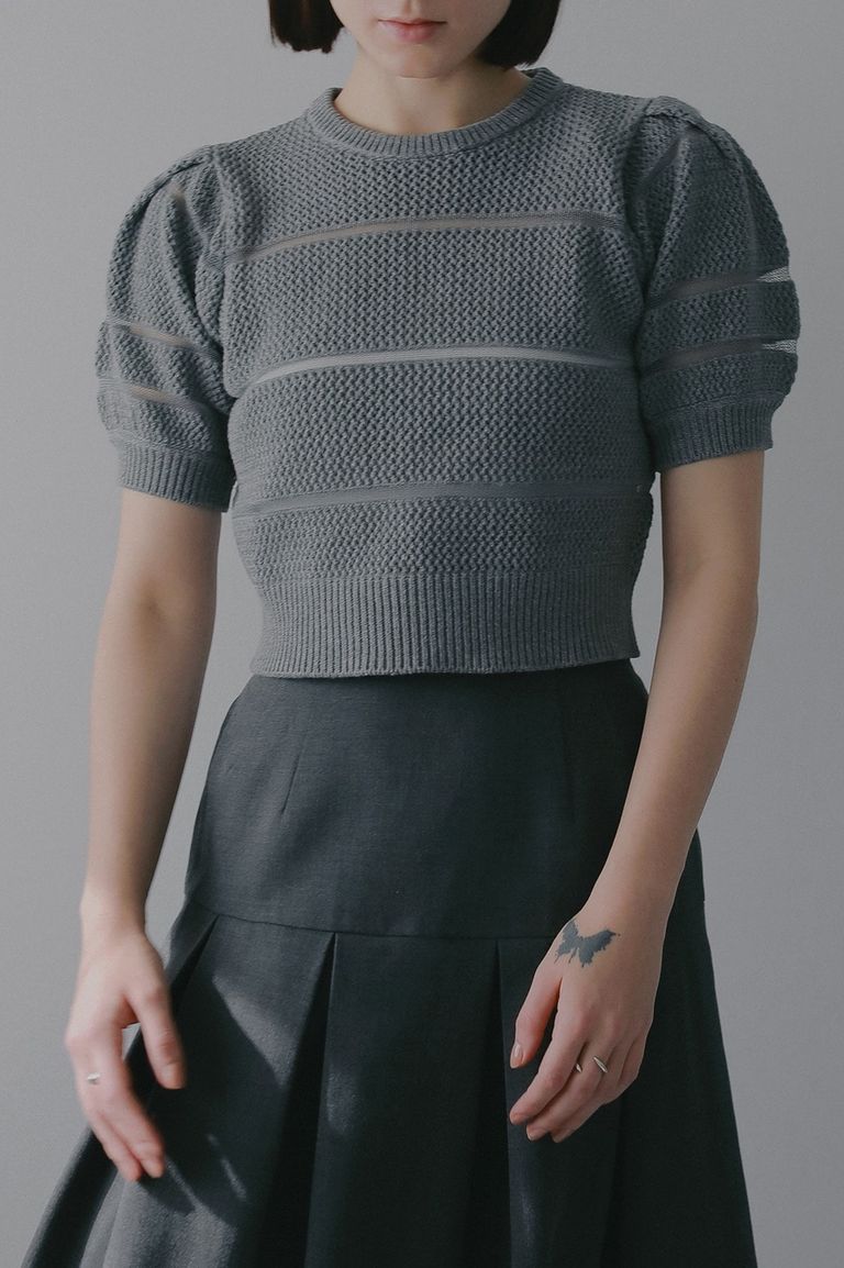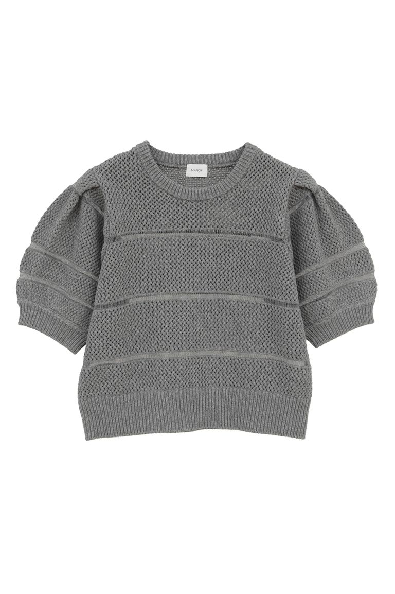 ショート丈ニットトップス - OPENWORK KNIT SHORT TOPS (GREY)