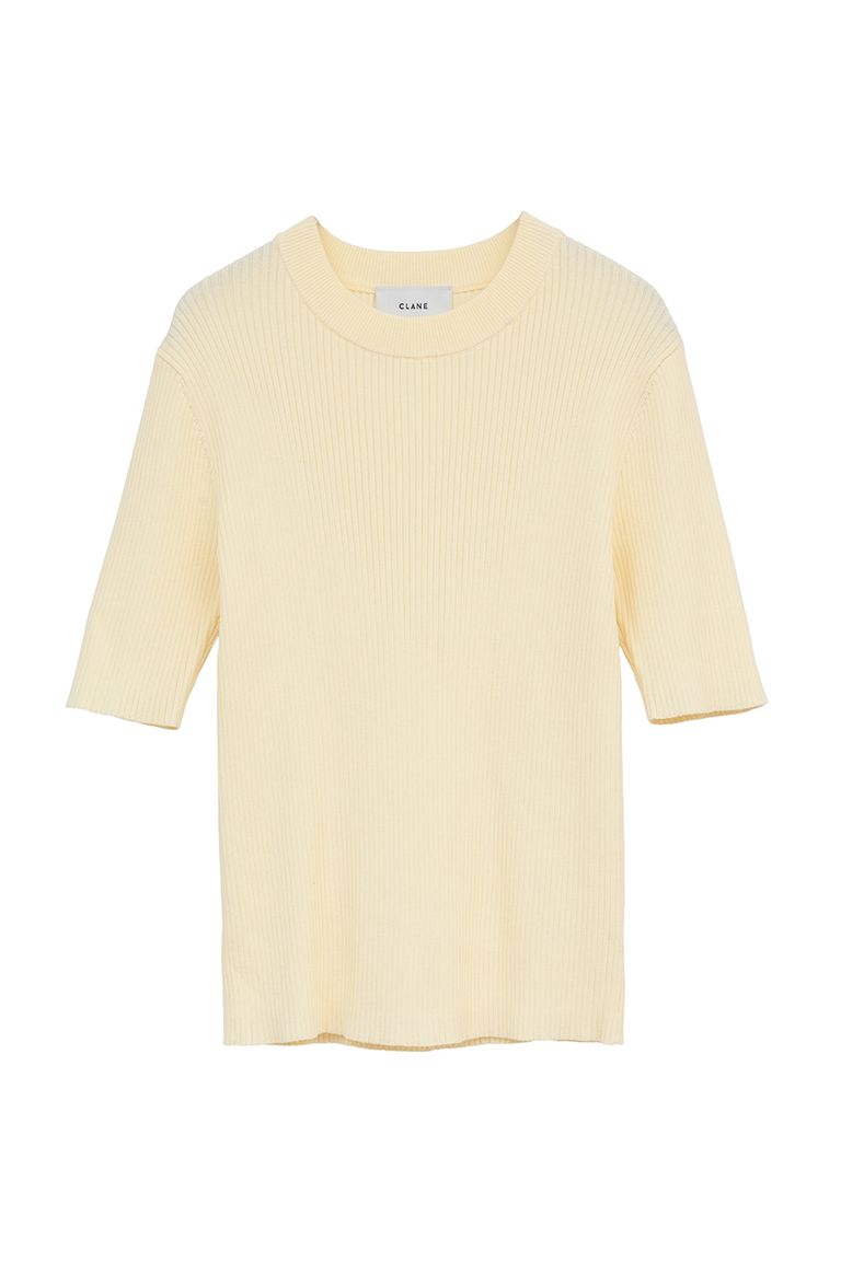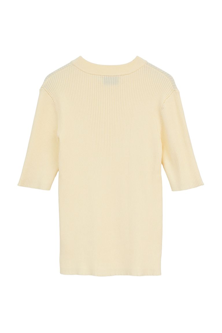 ハイネック 半袖リブニットトップス - H/N HALF SLEEVE RIB KNIT TOPS (YELLOW)