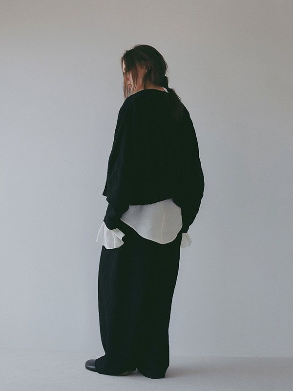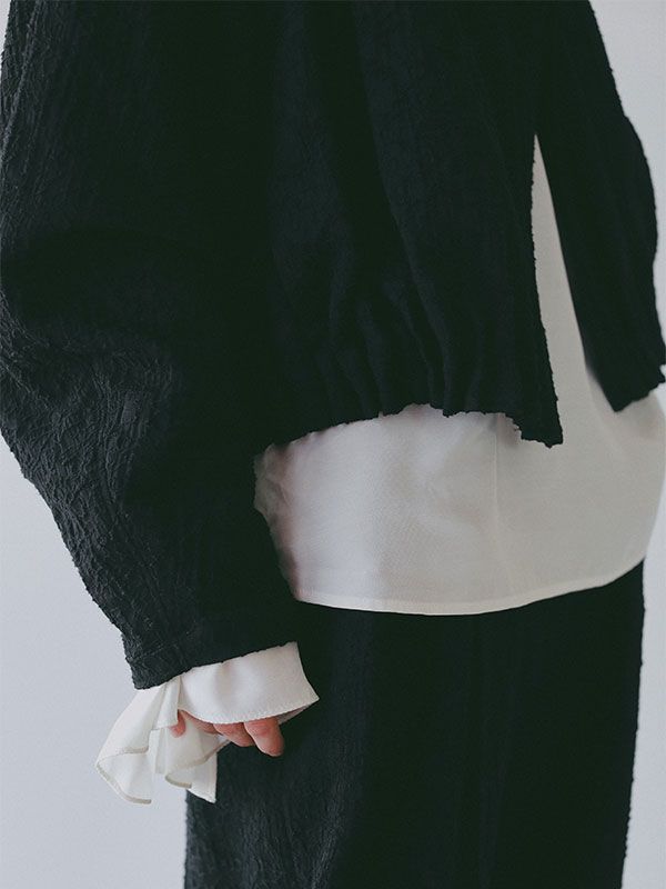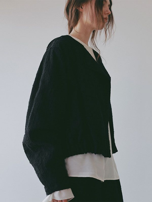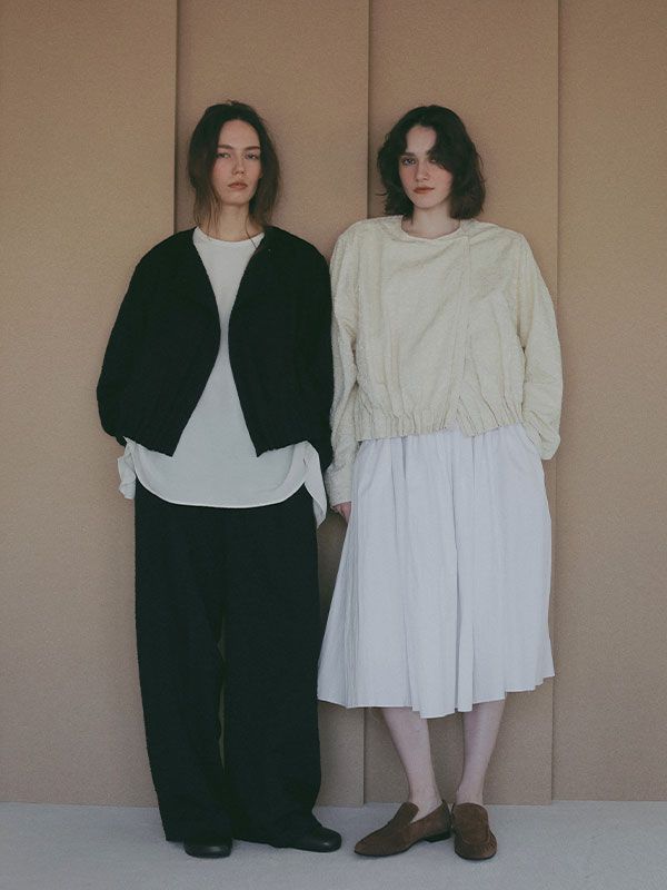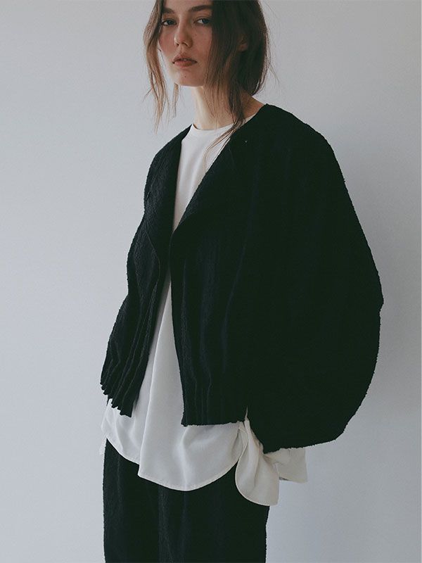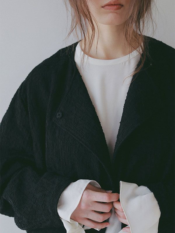 予約商品 ポイント10% ETRE TOKYO コットンジャガードライトブルゾン (BLACK) ¥44,000 税込 4,000 ポイント還元 入荷予定時期:2026年10月頃 この商品は 送料無料 でお届けします 注文 サイズ(採寸)情報 質問する お気に入り コーディネートリクエスト不可 お電話でもご注文いただけます!お電話の際は 商品番号:10185 をお知らせください。 電話をかける 070-9244-1519 ■対応可能時間 13:00~17:30(定休日:水曜+不定休) ※外出などの関係でお電話に出れない場合もございます サイズ 肩幅 袖丈 バスト 着丈 FREE 44 62 148 57 単位:cm 商品説明 立体フォルムと奥行きある素材感が際立つ、コットンジャガードブルゾン。綿をベースにポリエステルをブレンドしたオリジナルジャガード素材を使用し、軽やかで肌離れの良い着心地を実現。ジャガードの産地・桐生の老舗生地屋に眠る70年代アーカイブから着想を得た柄を再構築し、クラフト感とモダンな表情を融合させた一着です。太番手のコットンスラブ糸と強撚糸を組み合わせることで、ナチュラルな柄感とほどよいシボ感を表現。奥行きのある豊かなテクスチャーが、シンプルなスタイリングにも存在感を与えます。シルエットは袖に立体感を持たせ、裾にゴムタックを施すことで自然なボリュームを演出。コンパクトな着丈ながら動きのあるフォルムに仕上げ、バランスの取りやすい設計です。フロントはラフに開けて軽やかに羽織るスタイルはもちろん、襟元のボタンを留めることで上品な印象にもアレンジ可能。着こなし次第で雰囲気を変えられる汎用性の高さも魅力です。Tシャツやタンクトップにさらりと羽織るだけでスタイリングが完成し、季節の端境期にも活躍。同素材のパンツと合わせたセットアップスタイルで、より洗練された着こなしも楽しめます。 会員登録で即日使える1000円分のポイント + 常時5%還元 新規会員登録で、初回のお買い物から使える「1,000円分のポイント」をプレゼント。すべての商品は丁寧に検品・梱包し、最短で翌日からの発送にも対応しています。さらに、常時ご購入金額の5%をポイント還元。次回以降のお買い物でもご利用いただけます。※登録・年会費はすべて無料です。 ≪会員登録はこちら≫ 当サイト先行予約の利用規約 1. 予約商品のお支払いは全て前払いとさせていただきます。※クレジットカードの決済日は、ご注文の当日となります。銀行振込は、お振込み後にご予約完了となります。2. クレジットカード決済・銀行振込のいずれかの支払方法をご選択ください。 予約金の支払が完了次第予約の受付とさせていただきます。 尚、ご予約商品のキャンセルは承ることができませんので、予めご了承くださいませ。3.稀にですがブランド自体がその商品を作らなくなる(入荷がなくなる)場合がございます。 万が一そのような場合は、お支払い頂いた金額をすぐにご返金いたします。 ご質問ご不明な点があればお気軽にお問い合わせください。4.生産の都合上、商品の納期遅延が生じる場合があり、記載されている納期よりも大幅に遅れる場合もございます。※入荷予定日は予告なく変更となりますので、事前のご案内は致しかねます。※ご予約についての詳細はこちらから 詳細情報 カラー ブラック 素材 綿69% ポリエステル31% ブランド ETRE TOKYO 品番 1226501047 カテゴリ ジャケット・アウター > ブルゾン 性別 女性 返品 返品可能条件はこちら ラッピング 可能 入荷予定時期 2026年10月頃 配送方法 佐川急便(送料について) お支払い方法 本商品でご利用可能な決済方法は下記となります。各お支払い方法についての詳細はショッピングガイドをご覧ください クレジットカード決済 セキュリティコードとはクレジットカード裏面のサイン欄上部に記載されている数字の一番右の3桁の数字です。アメリカン・エキスプレス・カード提携のクレジットカードの場合、セキュリティコードはクレジットカード表面に記載されている4桁の数字となります。 Amazon Pay 楽天ペイ 銀行振込 サイズ(採寸)情報 サイズ 肩幅 袖丈 バスト 着丈 FREE 44 62 148 57 単位:cm このアイテムをシェア この商品について質問する