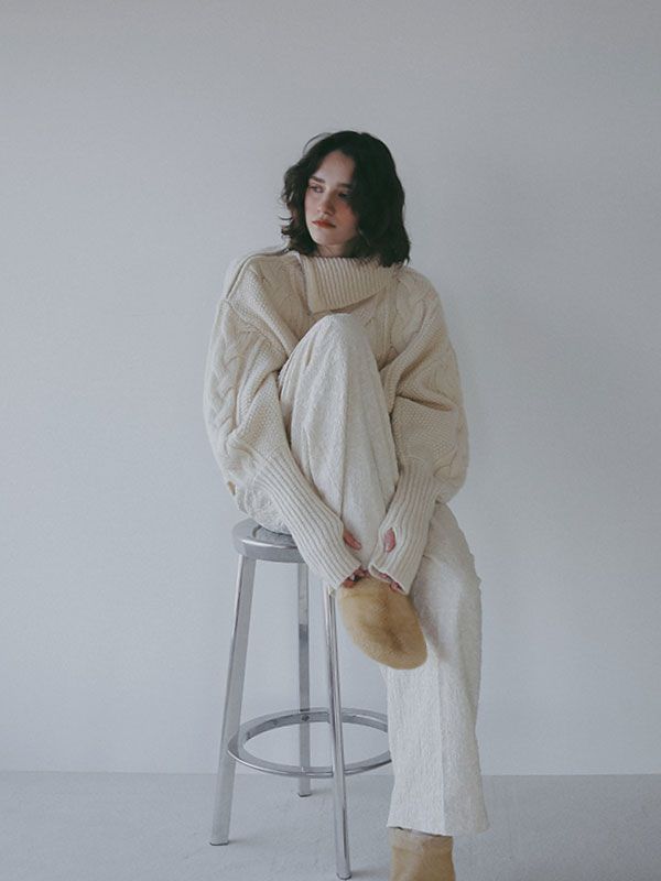 同素材のジャケットとのセットアップスタイルでモードにまとめるのはもちろん、シンプルなトップスと合わせることで素材の存在感を活かした着こなしもおすすめ。シーズンレスで活躍する、汎用性の高い一本です。