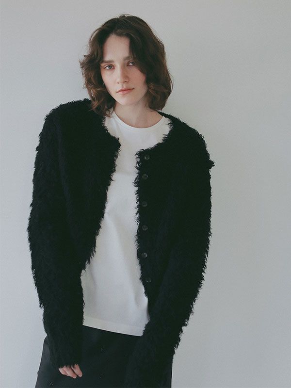 フェザーヤーンニットカーディガン (BLACK)