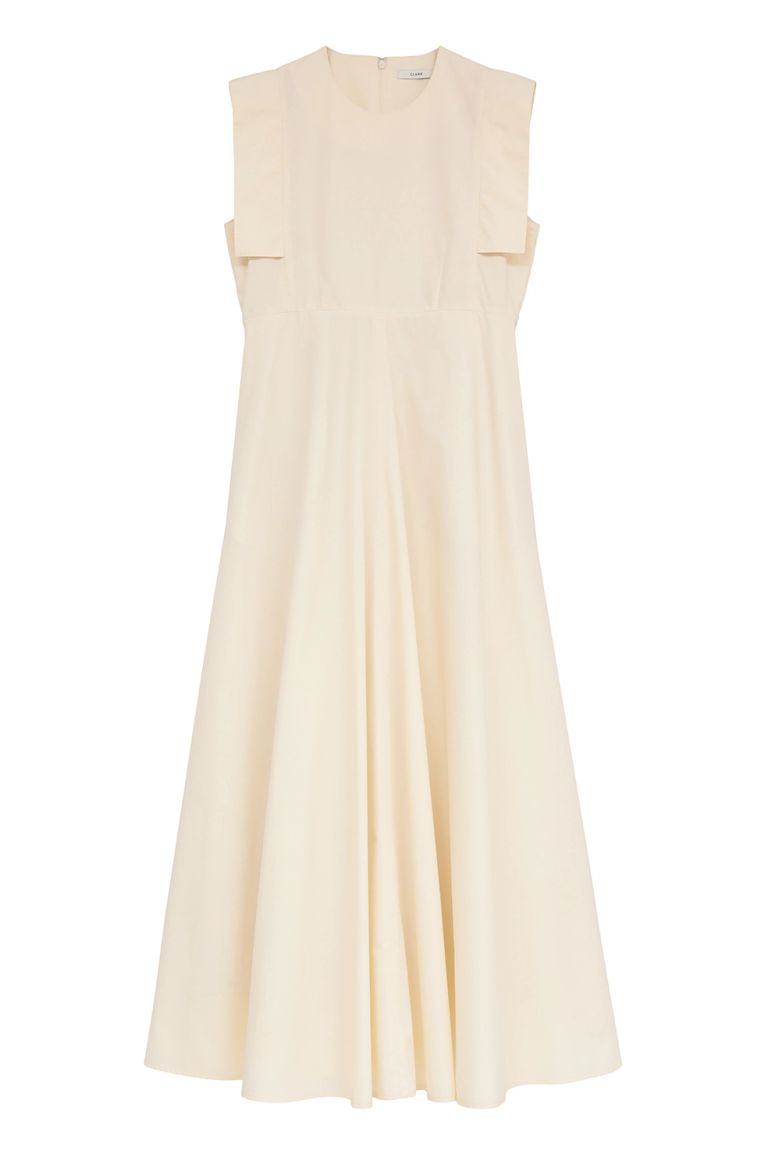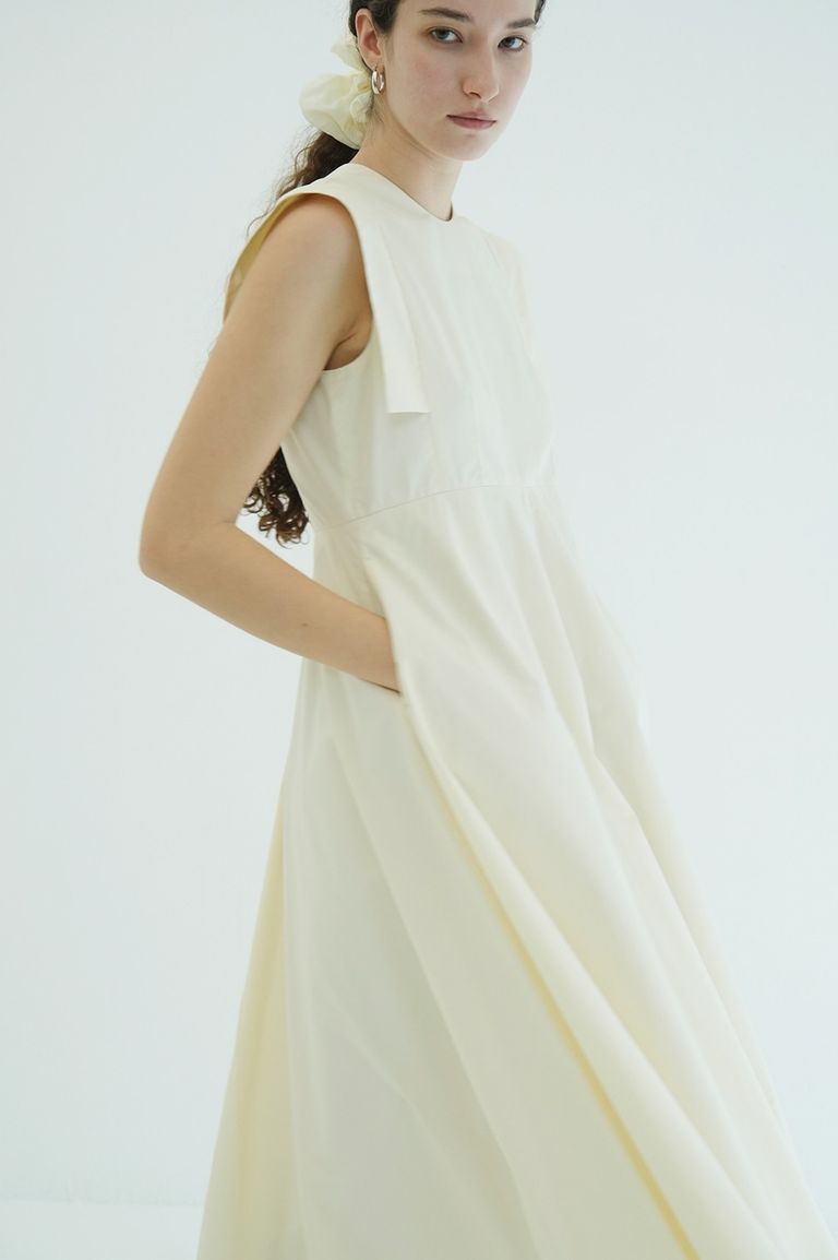 素材にはさらりとしたシャツ地のような軽やかな生地を使用。分量感のあるスカートも重たく見えず、動きに合わせてふんわりと揺れる軽快な着心地が魅力です。