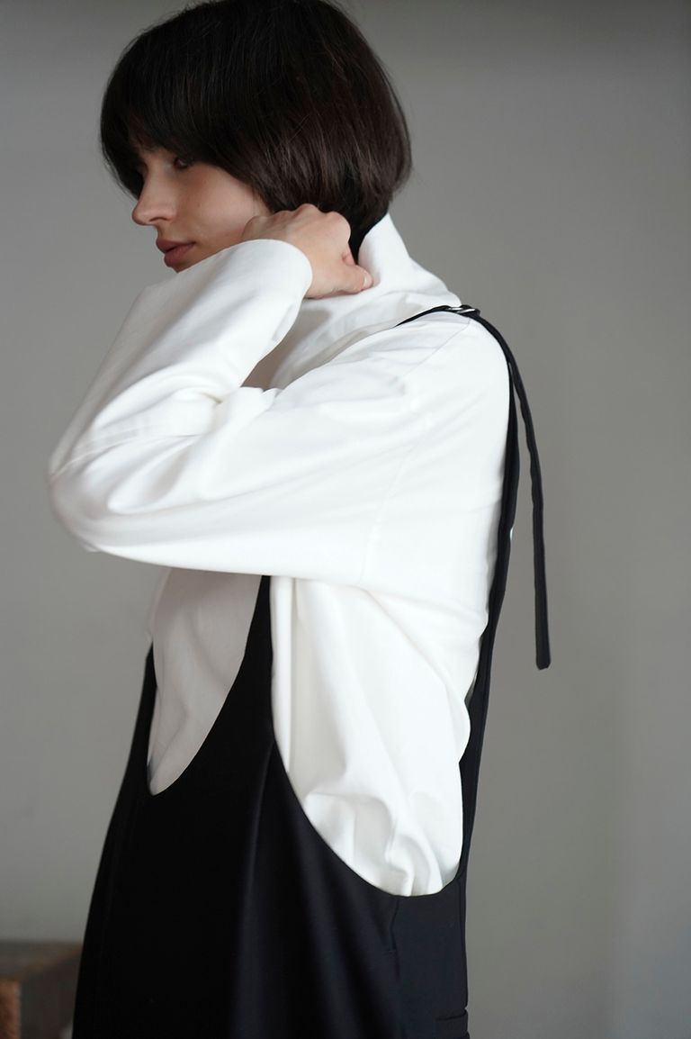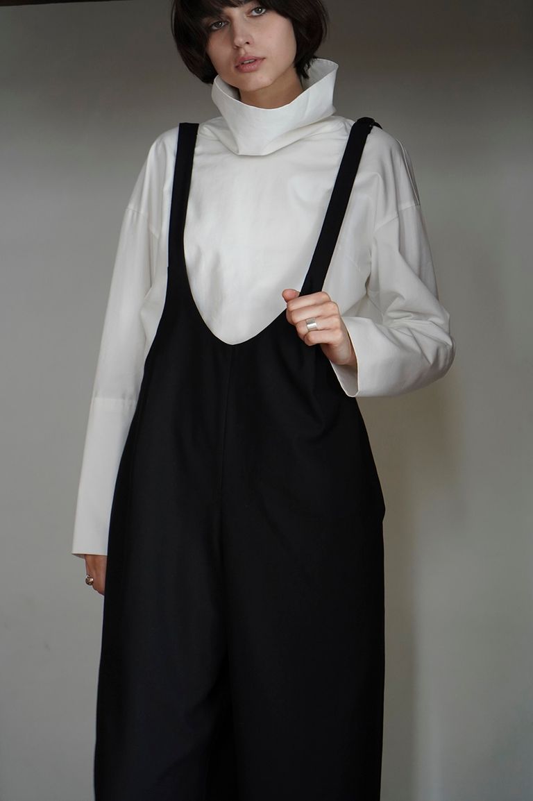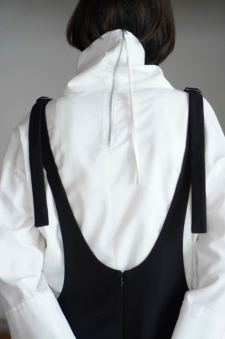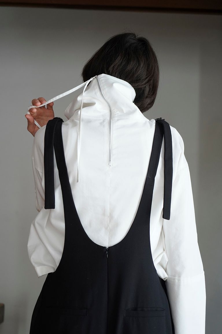 スタンドカラーシャツ - ROLL NECK WIDE SHIRT - WHITE