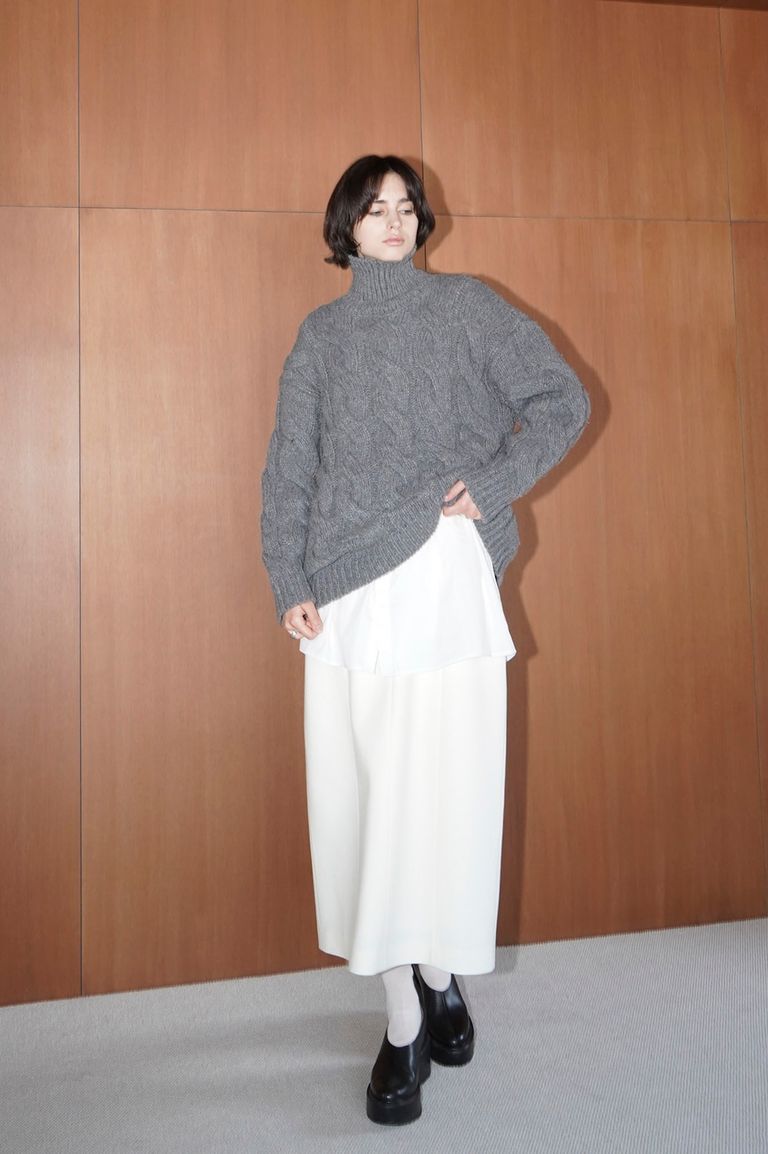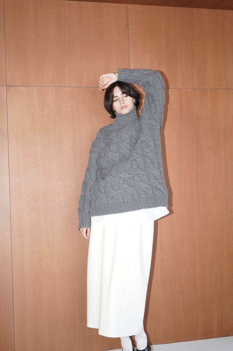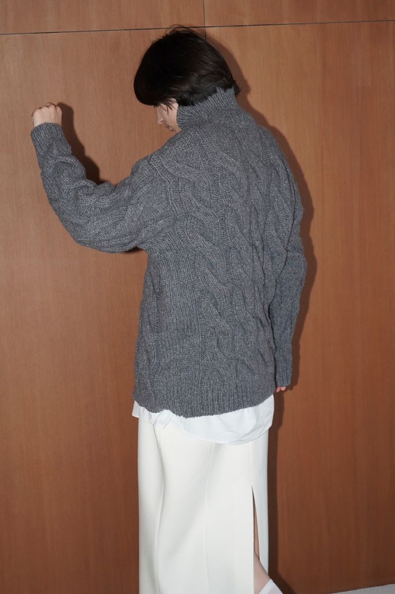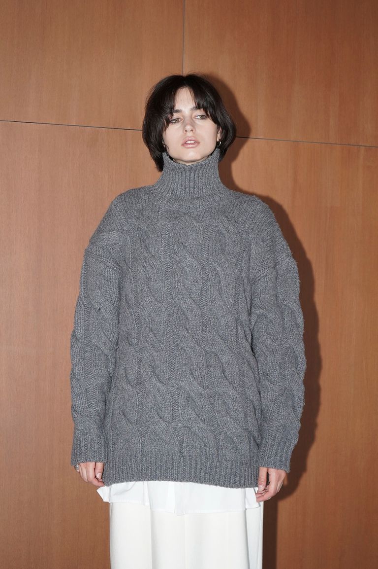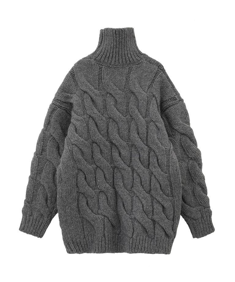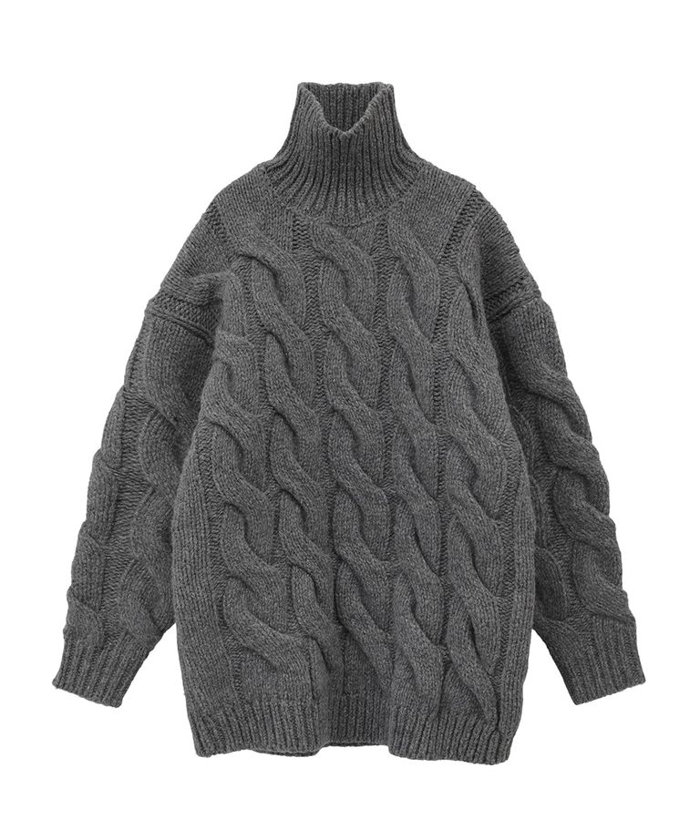 ビッグケーブル オーバーニット トップス - BIG CABLE OVER KNIT TOPS - GREY