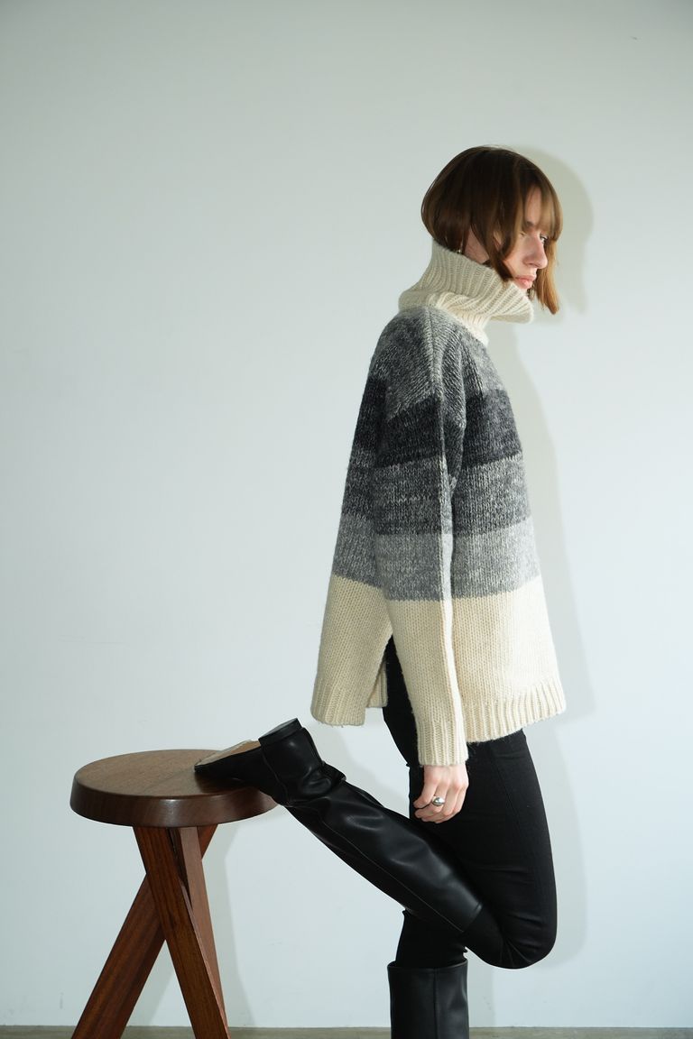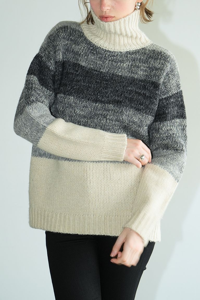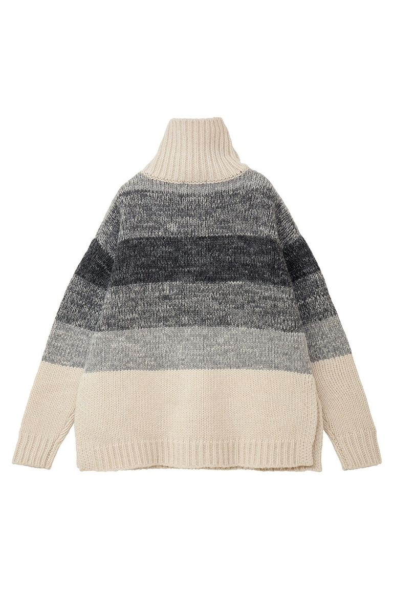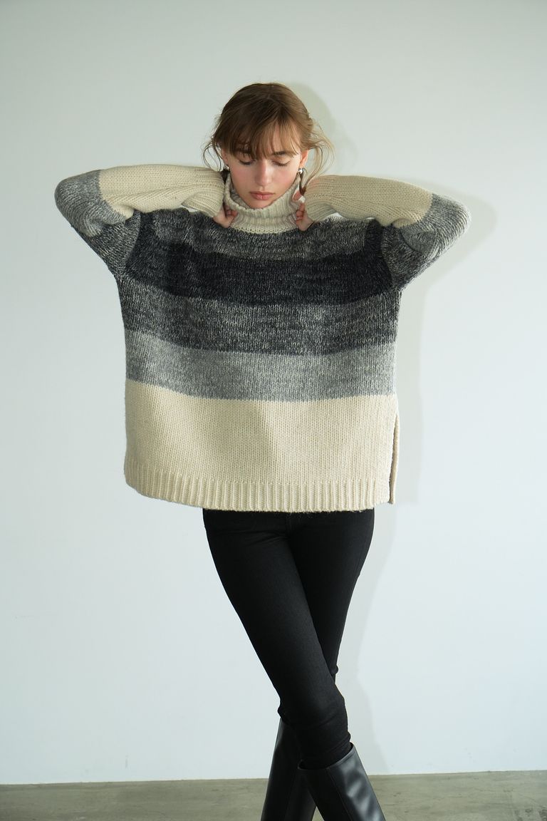 グラデーションボーダー ワイド ニットトップス - GRADATION BORDER WIDE KNIT TOPS - IVORY