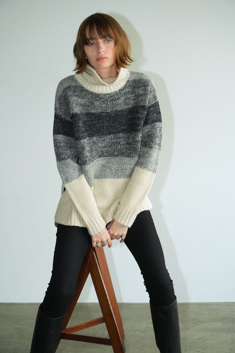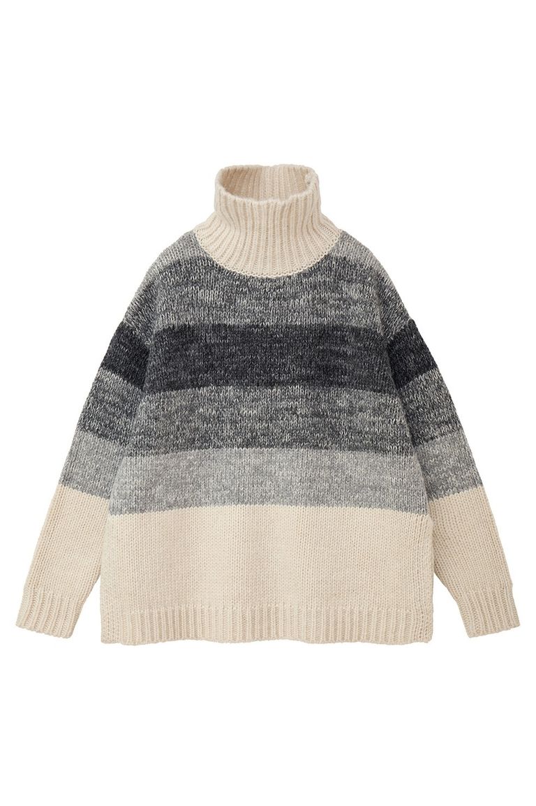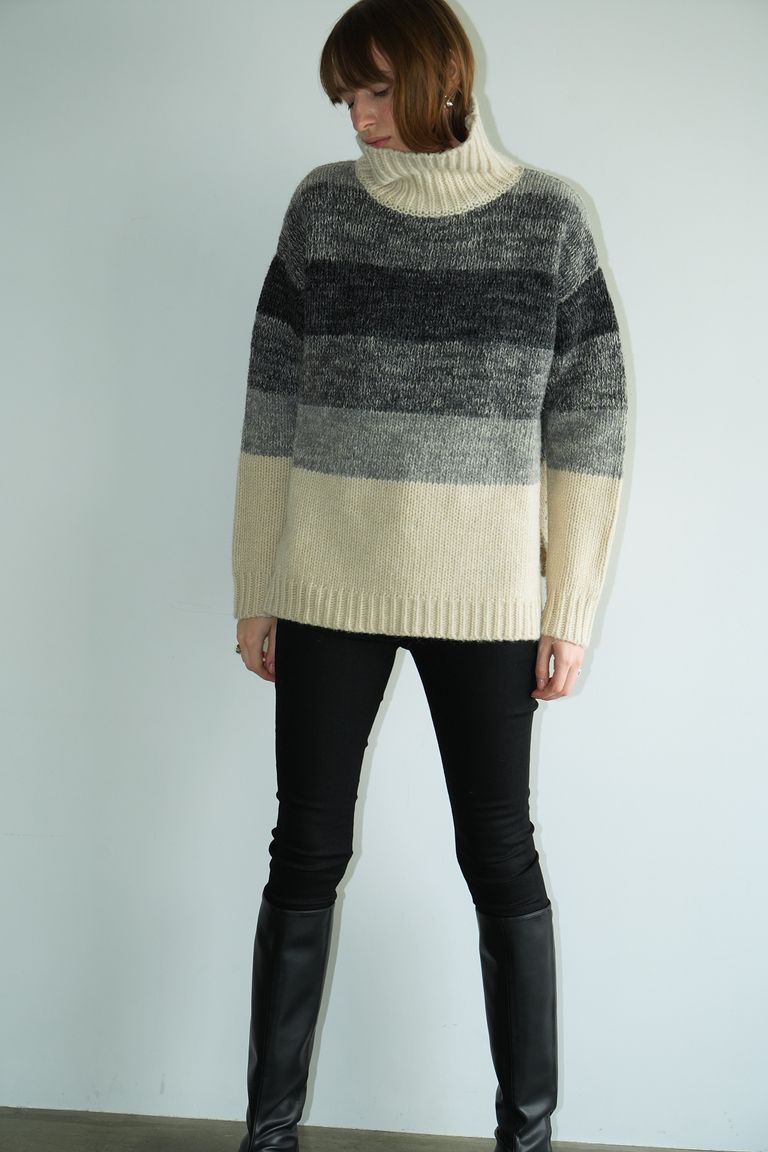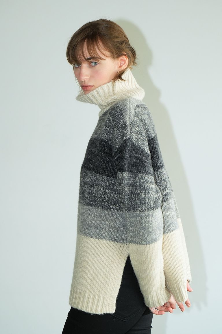 グラデーションボーダー ワイド ニットトップス - GRADATION BORDER WIDE KNIT TOPS - IVORY