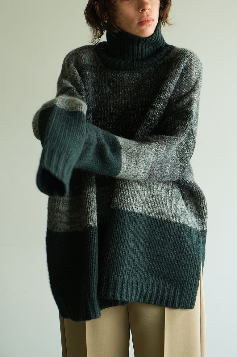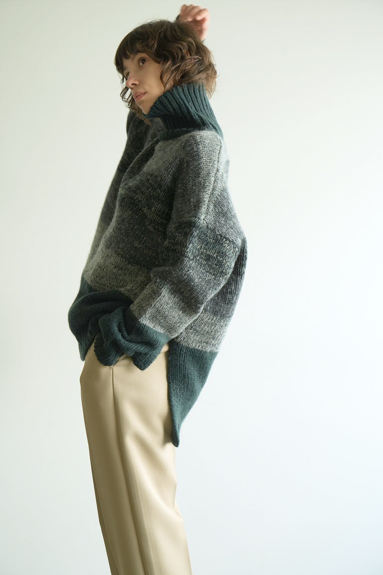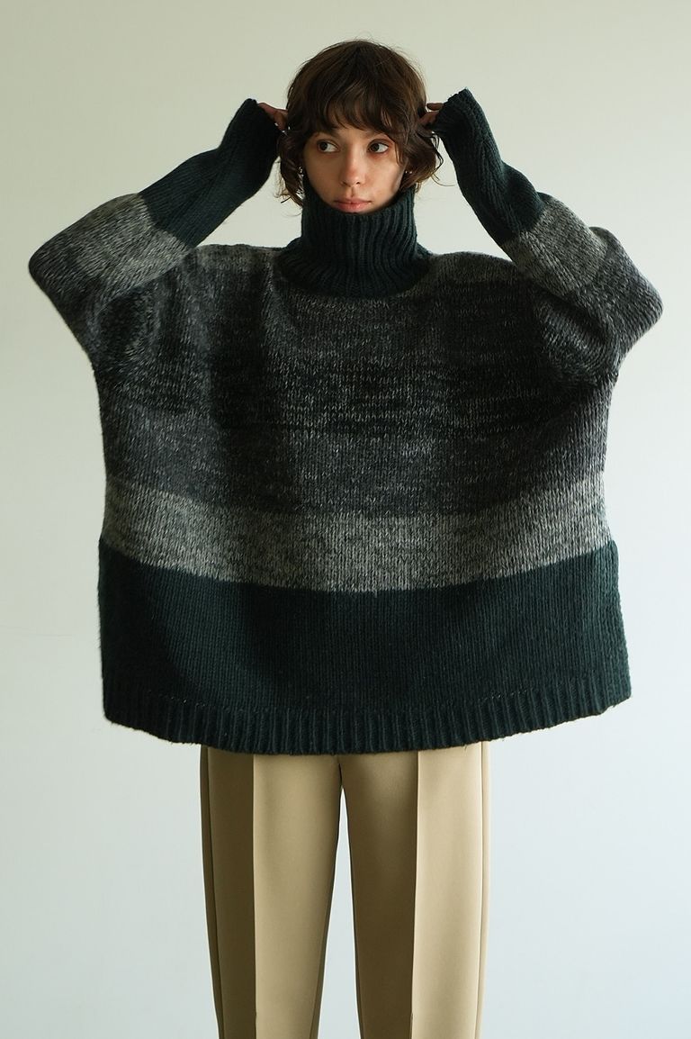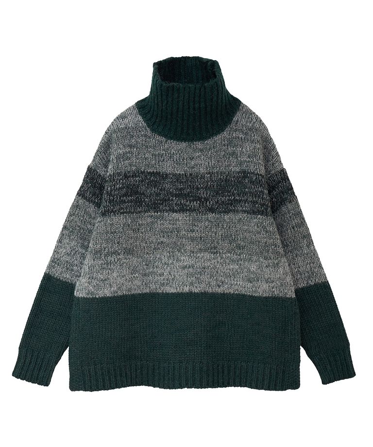 グラデーションボーダー ワイド ニットトップス - GRADATION BORDER WIDE KNIT TOPS - GREEN