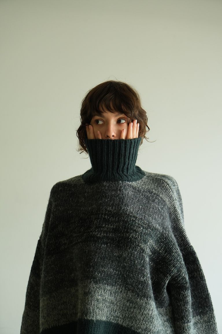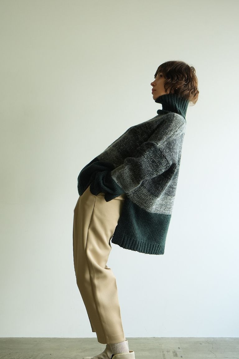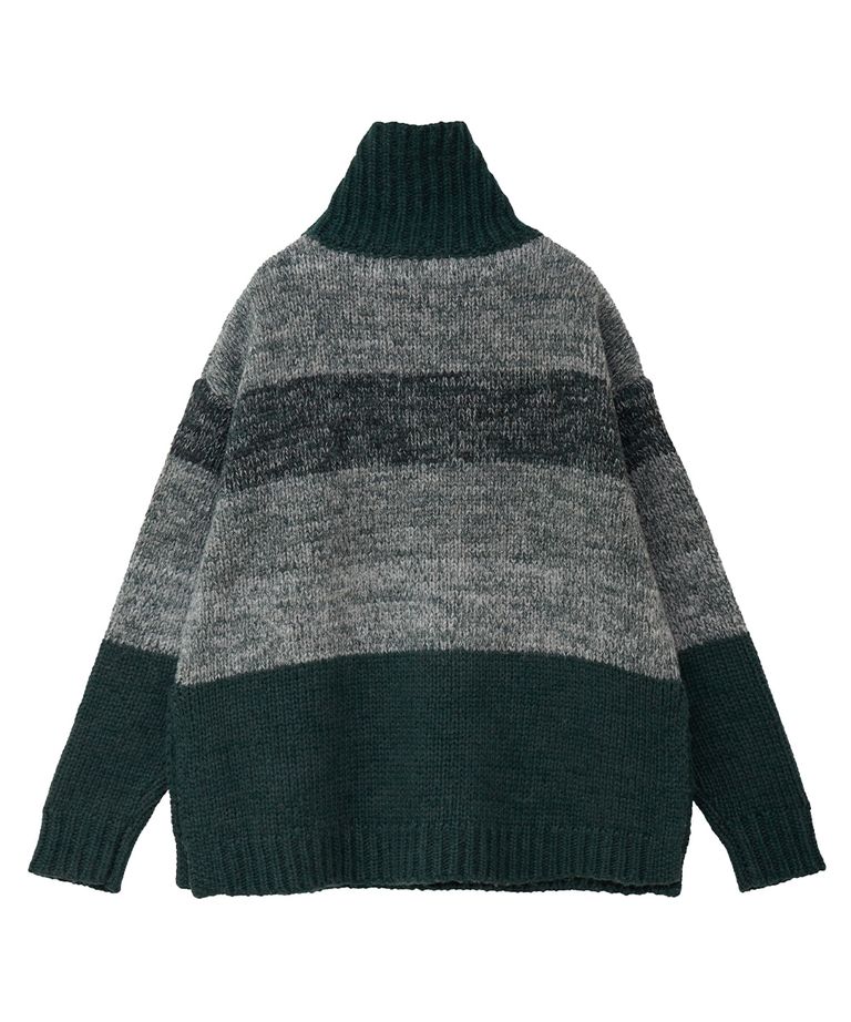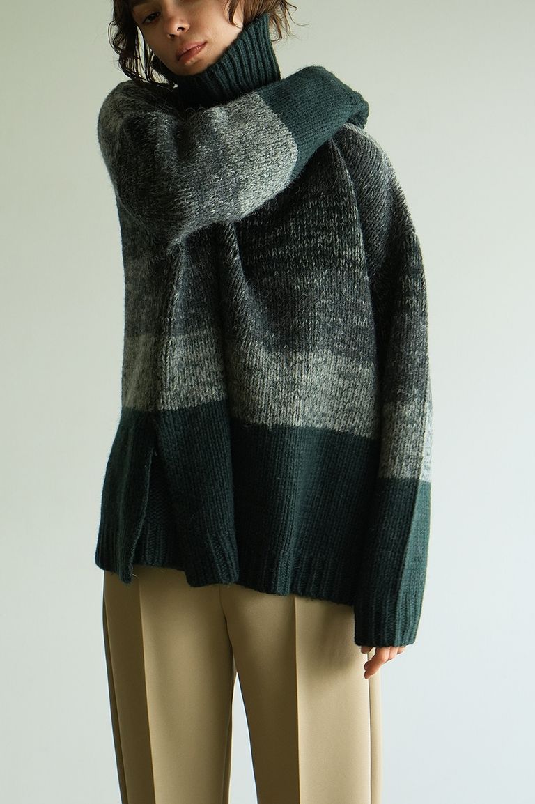 グラデーションボーダー ワイド ニットトップス - GRADATION BORDER WIDE KNIT TOPS - GREEN