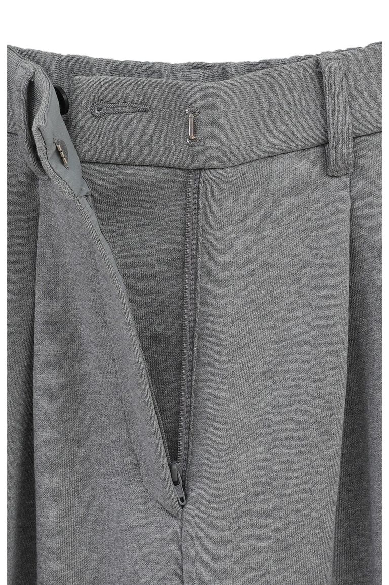 フロントに2本のタックを施すことで腰まわりにゆとりを持たせ、リラックス感のある穿き心地を実現。スウェットのカジュアルな表情に、前開きのスラックス仕様を取り入れることで、モードな雰囲気をプラスしました。