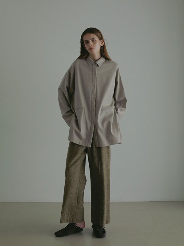 新入荷 ETRE TOKYO ハイカウントフラノオーバーサイズシャツ (GREIGE) ¥29,700 税込 810 ポイント還元 発送目安日:1–2営業日 この商品は 送料無料 でお届けします 注文 サイズ(採寸)情報 質問する お気に入り コーディネートをリクエストする お電話でもご注文いただけます!お電話の際は 商品番号:9468 をお知らせください。 電話をかける 070-9244-1519 ■対応可能時間 13:00~17:30(定休日:水曜+不定休) ※外出などの関係でお電話に出れない場合もございます サイズ 肩幅 袖丈 バスト 着丈 FREE 61 55 153 81 単位:cm 商品説明 羽織るだけで洗練されたムードをまとう、ウール混フラノのオーバーサイズシャツ 日本有数の織物産地・尾州で織り上げた高密度フラノ素材を使用。軽やかさとハリ感を兼ね備えた上質な生地は、薄手ながらも立体的なフォルムを生み出し、秋口から軽アウター感覚で活躍します。肩を落としたゆとりのあるシルエットと、ヒップまで隠れる長めの着丈が抜け感のあるバランスを演出。裾脇にはカーブデザインを取り入れ、動きのある立体感をプラスしました。袖口はすっきりとした一枚仕立てで、インナーとしても着やすくロングシーズン対応。カジュアルにもきれいめにも着回せる万能な一枚です。ディテール 尾州産の高密度フラノ素材を使用 薄手で軽やか、ほどよいハリ感あり ドロップショルダー×ロング丈のオーバーサイズシルエット 裾脇にカーブデザインを取り入れ、立体感を演出 袖口はすっきり一枚仕立てでレイヤードに最適 スタイリング 秋の始まりは一枚でさらりと 冬はニットやアウターの下に重ねて防寒&アクセントに デニムやスラックスと合わせて大人カジュアルに スカート合わせで女性らしくシフト 会員登録で即日使える1000円分のポイント + 常時3%還元 新規会員登録で、初回のお買い物から使える「1,000円分のポイント」をプレゼント。 すべての商品は丁寧に検品・梱包し、最短で翌日からの発送にも対応しています。さらに、常時ご購入金額の3%をポイント還元。次回以降のお買い物でもご利用いただけます。※登録・年会費はすべて無料です。 ≪会員登録はこちら≫ 詳細情報 カラー グレージュ 素材 毛99% ポリウレタン1% ブランド ETRE TOKYO 品番 1225510071 カテゴリ トップス > シャツ・ブラウス 性別 女性 返品 返品可能条件はこちら ラッピング 可能 発送目安日 1–2営業日 配送方法 佐川急便(送料について) お支払い方法 本商品でご利用可能な決済方法は下記となります。各お支払い方法についての詳細はショッピングガイドをご覧ください クレジットカード決済 セキュリティコードとはクレジットカード裏面のサイン欄上部に記載されている数字の一番右の3桁の数字です。アメリカン・エキスプレス・カード提携のクレジットカードの場合、セキュリティコードはクレジットカード表面に記載されている4桁の数字となります。 Amazon Pay 楽天ペイ 代金引換 配達時に現金でのお支払いの他、クレジットカードやデビットカードでの決済が可能な代金引換サービス一回のご注文での購入金額は150.000円までとさせていただきます。 銀行振込 サイズ(採寸)情報 サイズ 肩幅 袖丈 バスト 着丈 FREE 61 55 153 81 単位:cm このアイテムをシェア この商品について質問する
