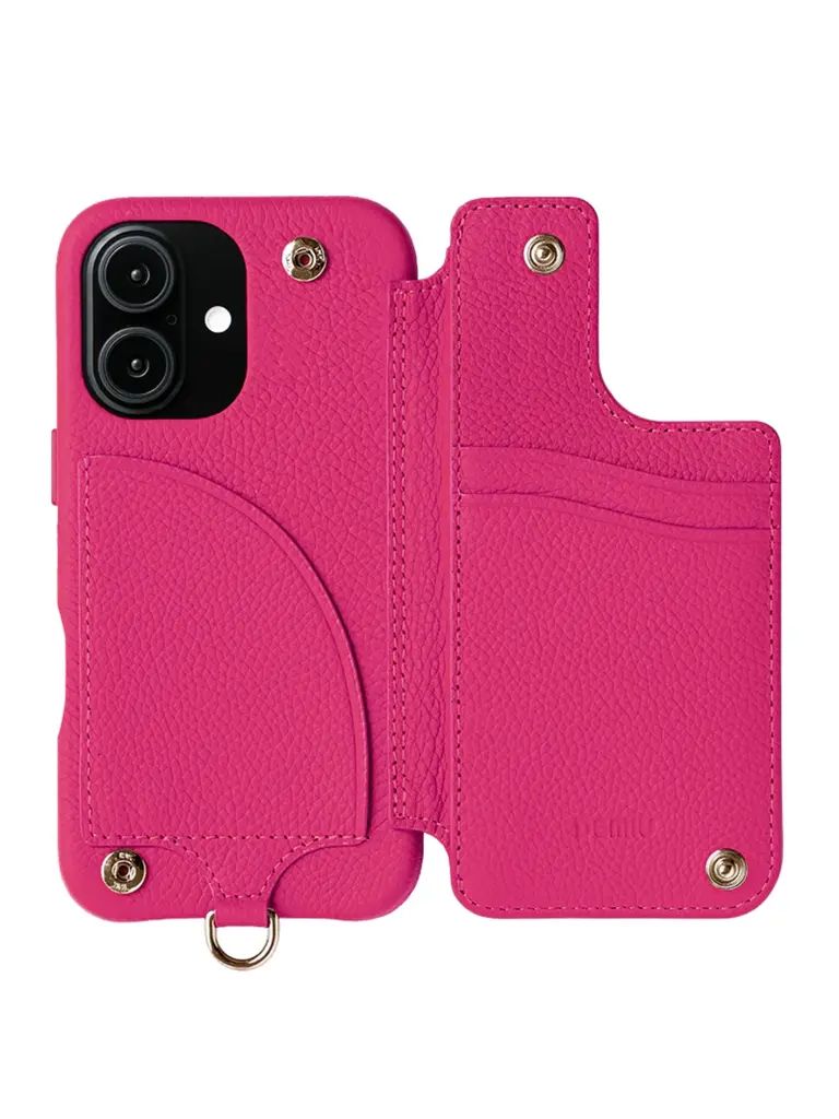 【GRACE / グレイス】 手帳型 レザーケース iPhone 14~17シリーズ対応 (マゼンダピンク)