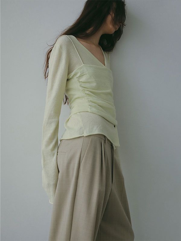 上品で華やかなシルエットが、レイヤードスタイルにも映える仕上がりです。