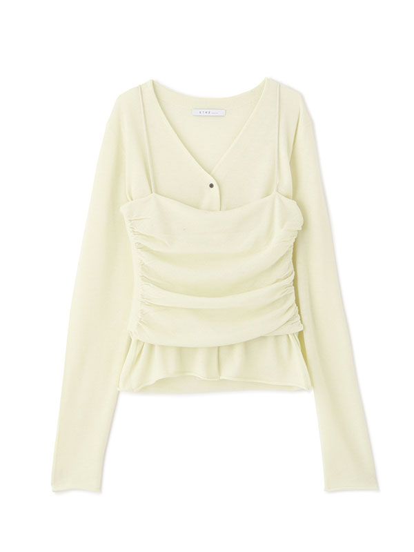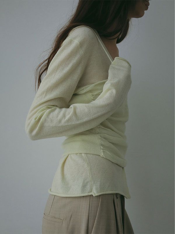 カーディガンとベアキャミソールがセットになったアイテムで、それぞれ単体でも、セットでも着用できる高い汎用性が魅力です。