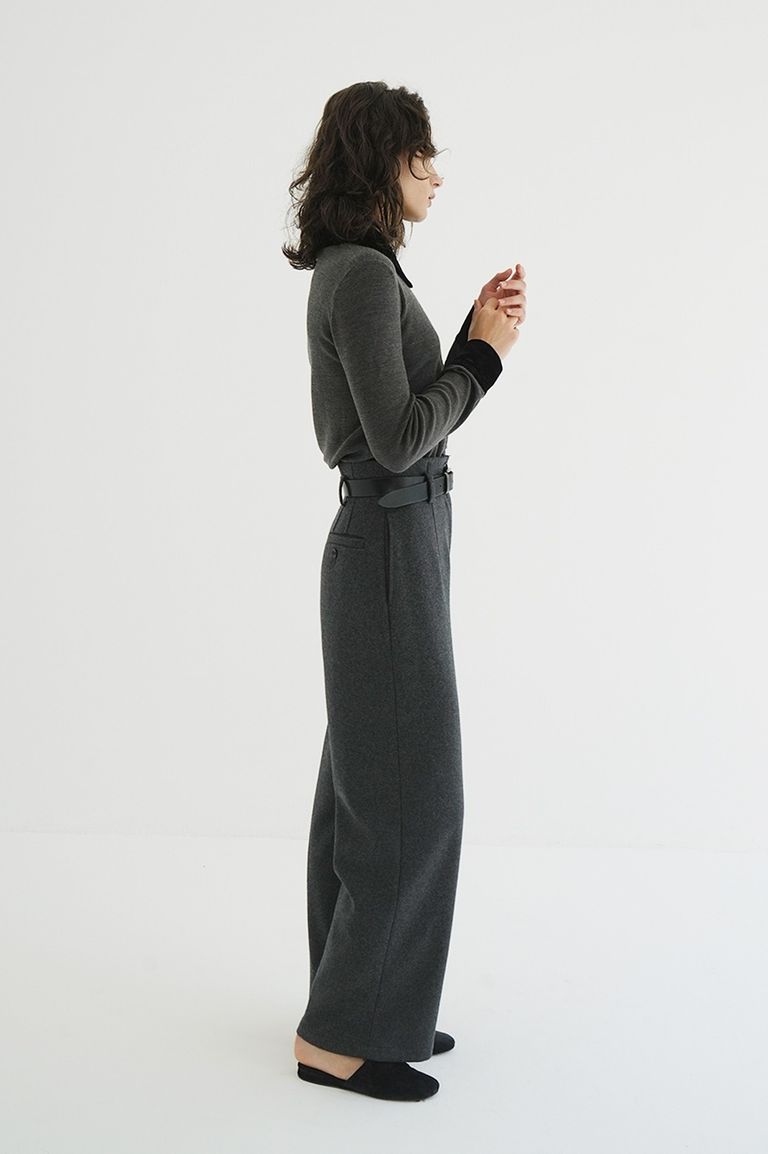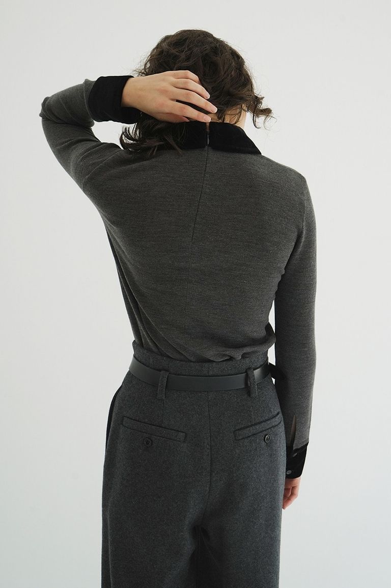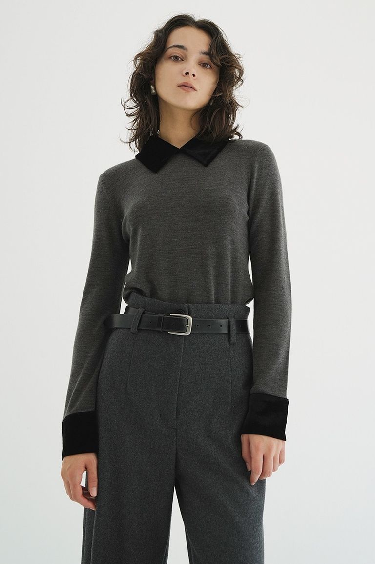 ベロアカラーニットトップス | VELOR COLLAR KNIT TOPS (GREY)