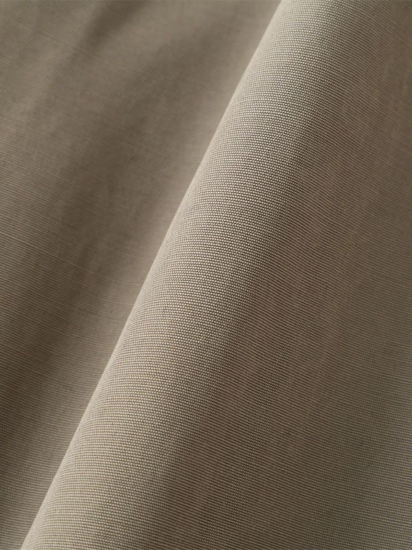 表地にはコットン×ポリエステルの混紡ツイルを採用し、ほどよいハリと控えめな光沢が上品さを添えます。カジュアルでありながらクリーンな印象を併せ持つ素材感が魅力です。