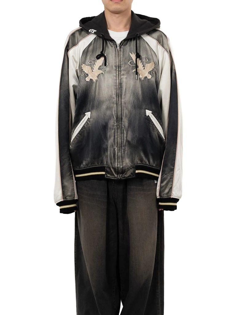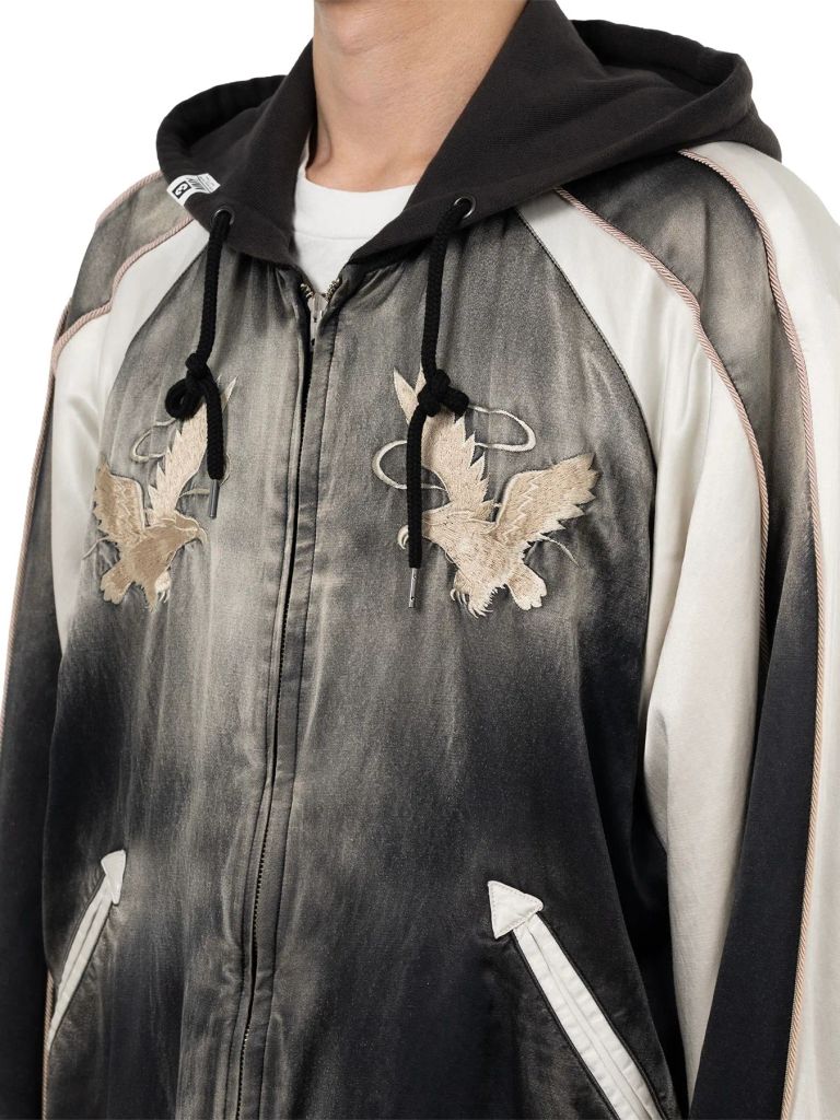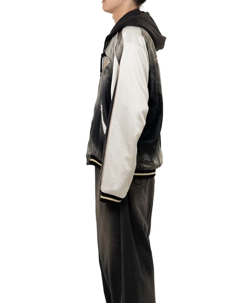 リバーシブルスーベニアジャケット - Reversible Hoodie Layered Souvenir Jacket (BLACK)
