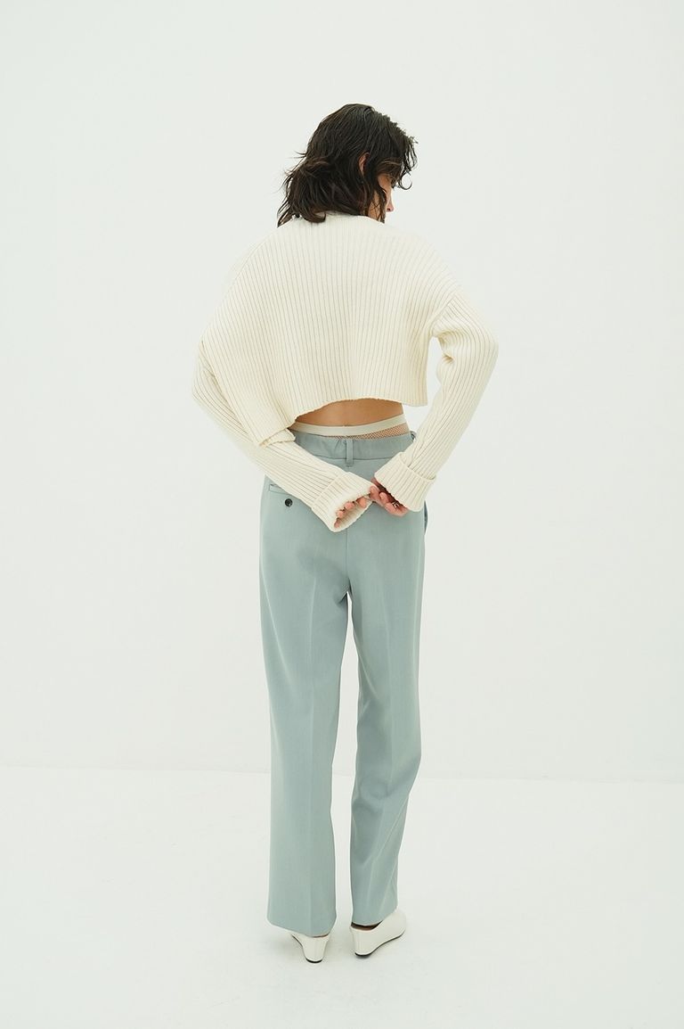 アシンメトリーショートニットトップス - ASYMMETRY WIDE SHORT KNIT TOPS (IVORY)