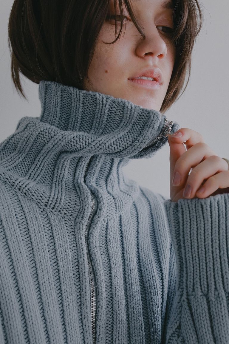 コットン混のリブニットで仕立てた、ジップアップ仕様のニットブルゾン。