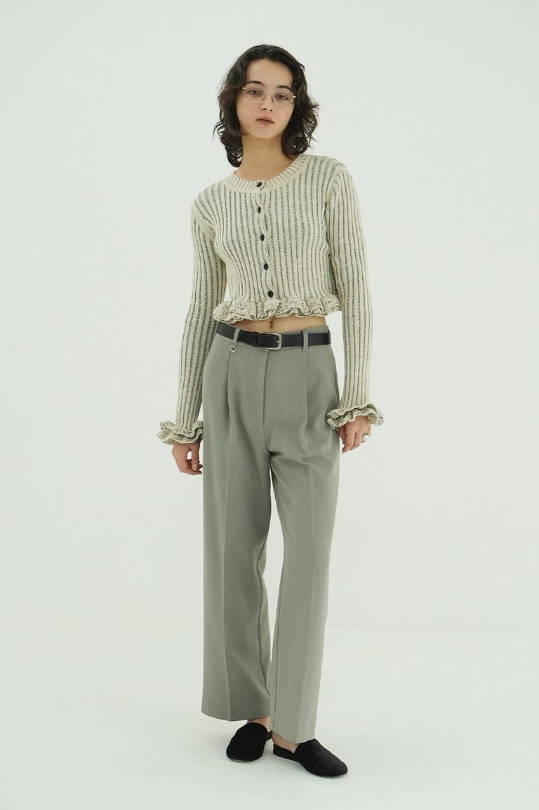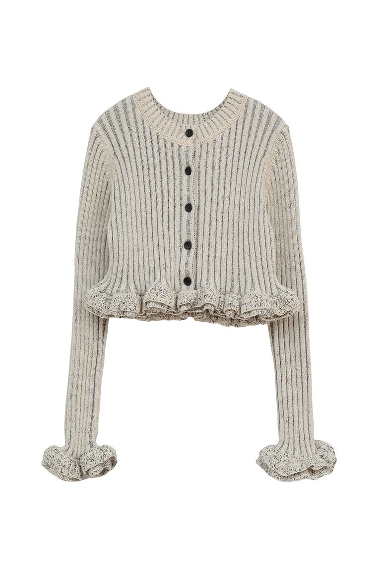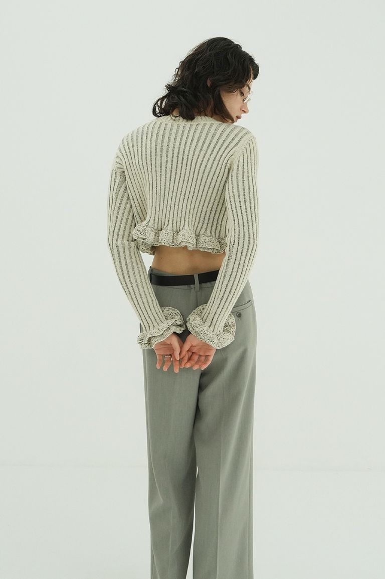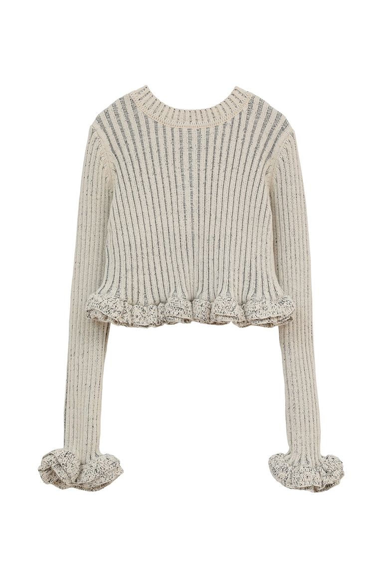 ダブルフェイス フリルド ニットトップス - W FACE SHORT FRILLED KNIT TOPS (WHITE)