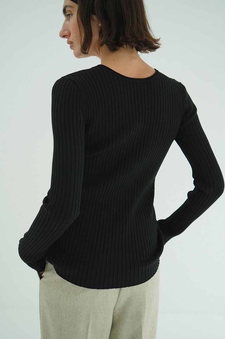 ダブルフェイスニットトップス - W FACE GOLD BUTTON KNIT TOPS (BLACK)