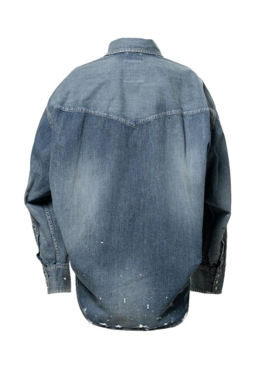キッズ ステッカー プリント デニム シャツ | Kids Sticker Printed Denim Shirt - INDIGO