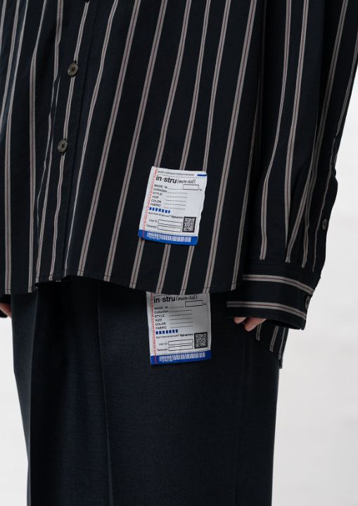コットン ハイ デンシティ ストライプ ロング スリーブ シャツ | Cotton High Density Stripe Long-sleeve Shirt- BLACK