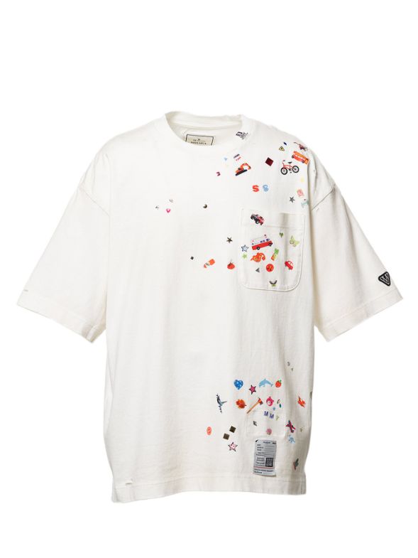 キッズステッカープリントティーシャツ - Kids Sticker Printed T-shirt (WHITE)