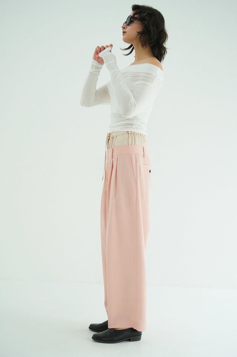 COMING SOON ポイント5% CLANE ダブルレイヤード スラックス - W WAIST WIDE SLACKS (PINK) ¥26,400 税込 1,200 ポイント還元 発送目安日:1–2営業日 この商品は 送料無料 でお届けします 注文 サイズ(採寸)情報 質問する お気に入り コーディネートをリクエストする お電話でもご注文いただけます!お電話の際は 商品番号:9984 をお知らせください。 電話をかける 070-9244-1519 ■対応可能時間 13:00~17:30(定休日:水曜+不定休) ※外出などの関係でお電話に出れない場合もございます サイズ ウエスト 股上 ヒップ 股下 1 66 36 115 69 単位:cm 商品説明 立体的にあしらったフリルが印象的なニットトップ今シーズンのテーマ“ HUG ”から着想を得たレイヤードパンツ。 異なる2本のパンツを重ね、ドッキングさせることで、一枚で完成するデザインに仕上げました。はっきりとしたバイカラーと異素材のコントラストが、奥行きのあるレイヤード感を演出。 インナーパンツには艶のある素材を採用し、さりげない上品さをプラスしました。アウターパンツはローウエスト設定にすることで、ほどよいルーズさと抜け感を表現しています。ウエストはゴム+ドローストリング仕様で、フィット感や履き位置の調整が可能。 トップスをタックインしてデザインを活かすスタイリングはもちろん、オーバーサイズトップスとのラフな合わせもおすすめです。一枚でレイヤードスタイルが完成する、主役級のパンツです。--------------------------- 裏地:なし ストレッチ:あり 透け感:なし --------------------------- 会員登録で即日使える1000円分のポイント + 常時5%還元 新規会員登録で、初回のお買い物から使える「1,000円分のポイント」をプレゼント。すべての商品は丁寧に検品・梱包し、最短で翌日からの発送にも対応しています。さらに、常時ご購入金額の5%をポイント還元。次回以降のお買い物でもご利用いただけます。※登録・年会費はすべて無料です。 ≪会員登録はこちら≫ 詳細情報 カラー ピンク 素材 ポリエステル97% ポリウレタン3% ブランド CLANE 品番 10110-7093 カテゴリ パンツ・ボトムス > スラックス 性別 女性 返品 返品可能条件はこちら ラッピング 可能 発送目安日 1–2営業日 配送方法 佐川急便(送料について) お支払い方法 本商品でご利用可能な決済方法は下記となります。各お支払い方法についての詳細はショッピングガイドをご覧ください クレジットカード決済 セキュリティコードとはクレジットカード裏面のサイン欄上部に記載されている数字の一番右の3桁の数字です。アメリカン・エキスプレス・カード提携のクレジットカードの場合、セキュリティコードはクレジットカード表面に記載されている4桁の数字となります。 Amazon Pay 楽天ペイ 代金引換 配達時に現金でのお支払いの他、クレジットカードやデビットカードでの決済が可能な代金引換サービス一回のご注文での購入金額は150.000円までとさせていただきます。 銀行振込 サイズ(採寸)情報 サイズ ウエスト 股上 ヒップ 股下 1 66 36 115 69 単位:cm このアイテムをシェア この商品について質問する