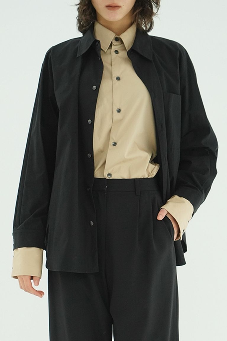 レイヤードシャツ - TWO TONE LAYERED SHIRTS(BLACK)